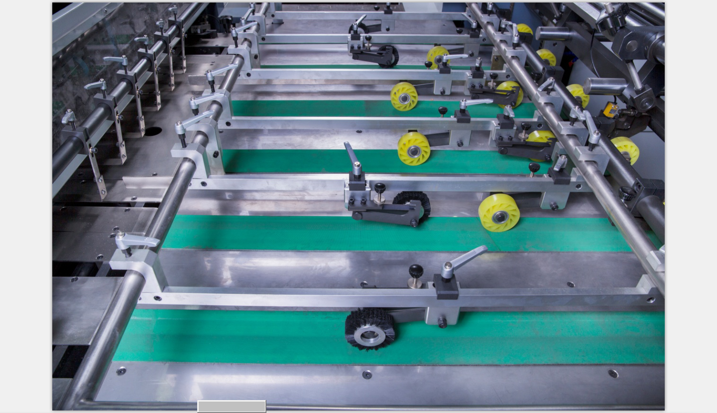 輸紙皮帶采用原裝進口、壓紙毛刷輪能适應不同厚度的紙闆調節 。