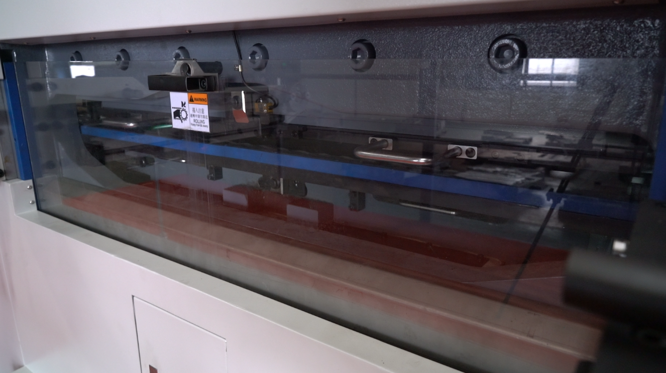 模切部操作安全門及氣動式闆框安全鎖緊系統。
