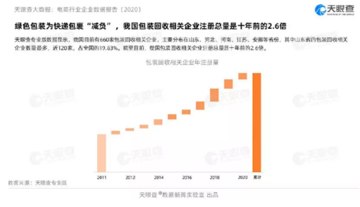 因此,受電商的帶動,自2014年開始,我國包裝相關企業注冊增速始終保持17%以上。其中,2019年新增超過32萬家相關企業,2020年前10個月已新增近23萬家相關企業。